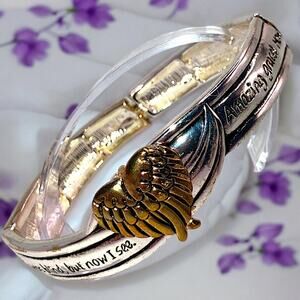 NWOT! Two-Tone Angel Wing Amazing Grace Prayer Stretch 2 5/8 Inch Bracelet!