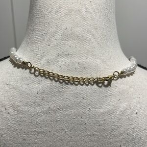 NWOT Two-tone enamel pendant with faux pearl chain
