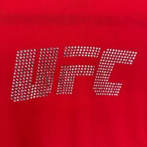 NWOT UFC Red Rhinestone Detail Cropped Short Sleeve Tee Sz Large