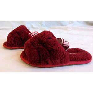 NWOT UGG Kids Fluff Yeah Slingback Slippers Red Genuine Shearling Open-Toe Size 9