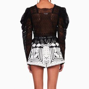 In Ephedra — a print of black and white that feels organic, like bark, bone, or hand-painted textile — these shorts speak in texture and movement. The high waist sculpts the silhouette with quiet authority, while soft pleats and wide legs allow for freedom, breath, and effortless grace.