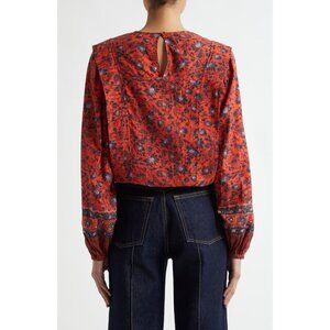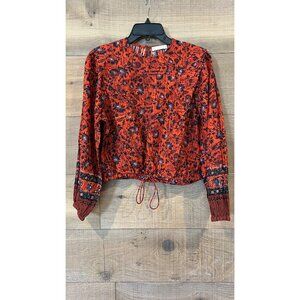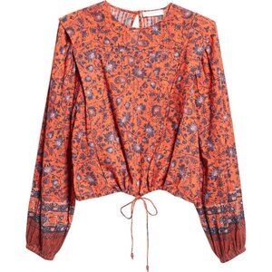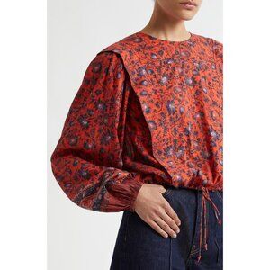 NWOT ULLA JOHNSON Prisha Drawstring Hem poppy Cotton Blend Top shirt size 2
