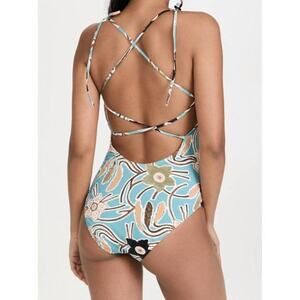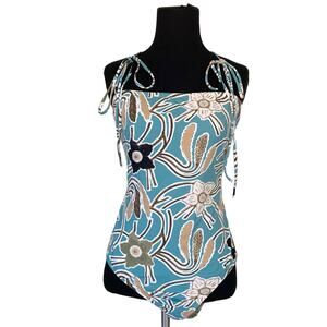 NWOT ULLA JOHNSON Swimsuit One-Piece L“Marisol Maillot”Floral Bow-Tie LaceUpBack