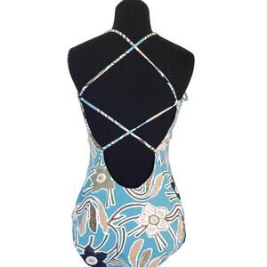 One-Piece Swimsuit.Floral.Blue,Cream/Beige,Brown.