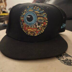 NWOT. Never worn, 2021 deadstock. Mishka Opie Ortiz New Era 59Fifty Fitted "Keep Watch" fitted hat in black, size 7 1/2. The front design features a full-color embroidery of Opie Ortiz’s Keep Watch piece. The special fabric used for the undervisor has a printed image of an open mouth minus two upper front teeth. Ultra Rare, Special Edition.