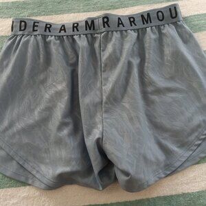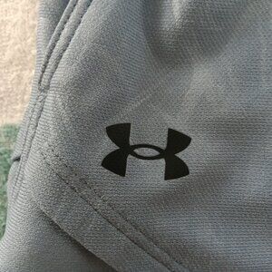 HARD-TO-FIND PATTERNED UNDER ARMOUR GRAY ATHLETIC / GYM SHORTS, SIZE "L" (EST. APPROX. 33"). This is a unique short with two (2) side pockets, a heavy internal drawstring closure. Overall length is approximately 12", with a 3" inseam (Shorter than similar shorts.) Great for any athletic undertaking but a super running, PT, or gym workout. The waist measures (Lying Flat) approximately 14 1/2" with the tradition "UNDER ARMOUR" text waistband.
