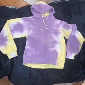 NWOT UNISEX TIE DYE HOODIE SWEATSHIRT. UNUSUAL LAVENDER AND YELLOW COMBO. Marked size S but please go by measurements