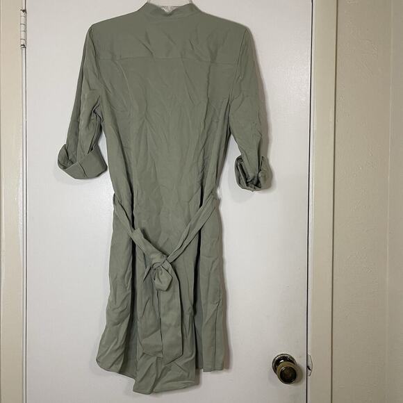 NWOT UNTUCKIT OLIVIA SAGE GREEN BUTTON FRONT BELTED UTILITY DRESS SIZE US 8