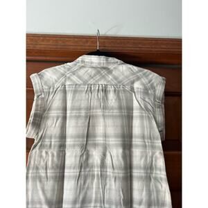 NWOT UNTUCKit Women's Villefranche Plaid Button Up Shirt Cap Sleeve Gray Size 4