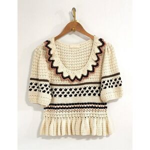 NWOT Ulla Johnson Cream Cotton Short-Sleeve Flor Pullover Sweater Top
