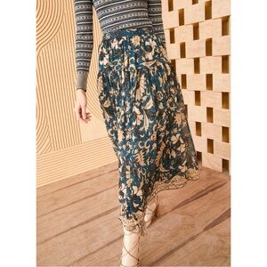 NWOT Ulla Johnson Midi Silk Floral Pleated Meja Skirt