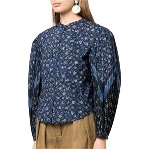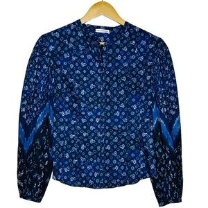 NWOT Ulla Johnson Rami Printed Blouse in Ultra Marine Blue 10