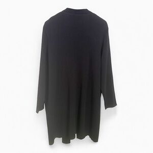 Elegant and versatile, this Ulla Popken black duster jacket is the perfect layering piece for your wardrobe. Designed in a stretchy ribbed knit that holds its shape, it features a modern fold-over collar with an asymmetric open front for a flattering silhouette. Long sleeves can be worn full length or rolled up with the tab option, giving you two stylish looks in one. Made from a soft, comfortable blend of viscose and polyamide, it's machine washable and easy to care for. Length is approximately 35½", making it ideal to wear over dresses, tops, or tees for added warmth and effortless style.