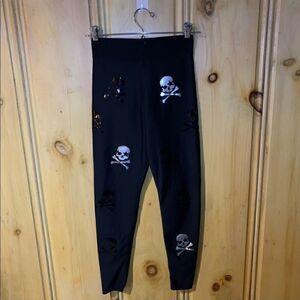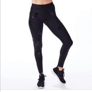 NWOT Ultracor x Soulcycle high knockout patent nero silver pop skull leggings sm
