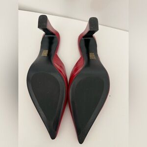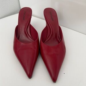 Stylish red heeled mules with a sleek design. Perfect for any occasion.