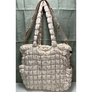 NWOT Unbranded ivory-colored puffer tote bag with matching clutch