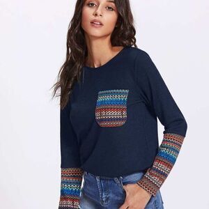 Unbranded long sleeved top with Aztec print detail