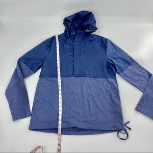 NWOT Under Armour Hybrid Wind Rain Pullover - Half snap front with hood. Top is a rain resistant fabric and the the lower is super soft jersey knit material. Has drawstring waistband. Never worn.