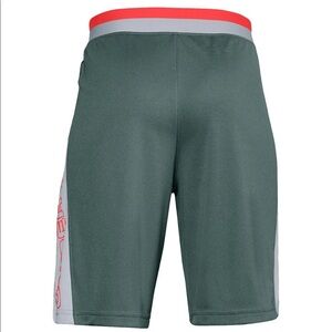 NWOT Under Armour Stunt 2 0 Shorts Size YSM Color is green/neon red/silver