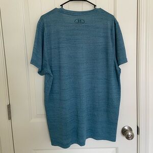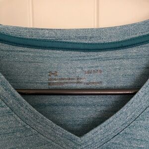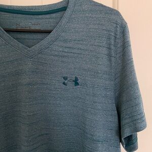 Men’s Under Armour top. Top is made of active material, teal in color, & v-neck cut. Size large. Smoke free home!