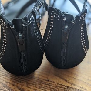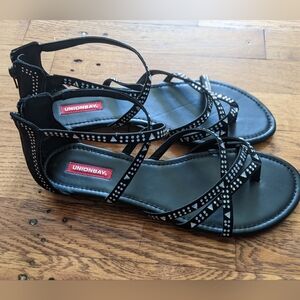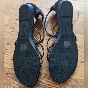 Black with geometric rhinestone detail, Strappy sandals with zipper at back of heel. New without tags!
