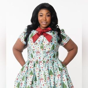 NWOT Unique Vintage Cora Swing Dress – Forest Gnome Christmas Scene Sz 3X