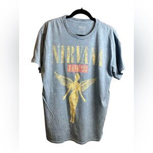 NWOT Unisex Blue Short Sleeve Tee Short Nirvana 1993 Concert Tour - Size Large