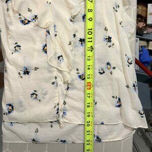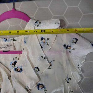 NWOT Universal Thread Cream Floral Print Cap Sleeve Blouse, Ruffles, MEDIUM