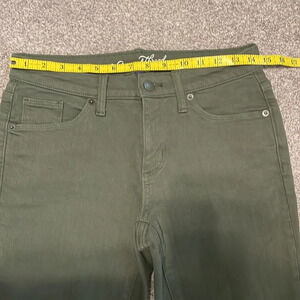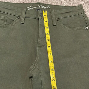 NWOT Universal Thread Mid Rise Jegging Green Raw Hem Distressed Holes in Knees in size 4/27R. Traditional 5 pocket style with zipper and button front closure. Please see photos for approximate measurements and details. Photos are part of the description, as everyone’s level of condition may vary. Excellent new condition from smoke free and pet free home.