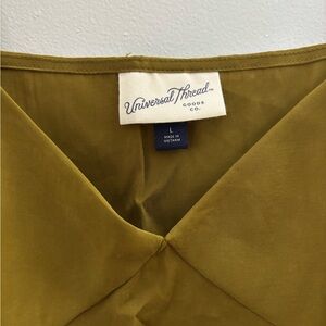 Stylish olive green camisole. Spaghetti straps. Perfect for layering. Size Large. 86% Rayon/ 14% Recycled Polyester