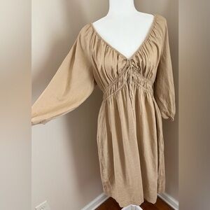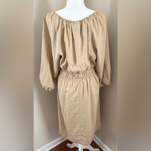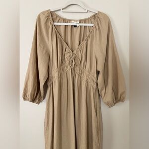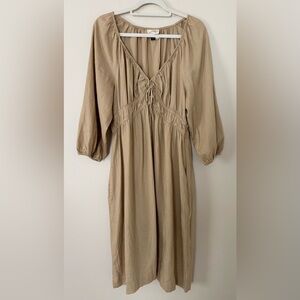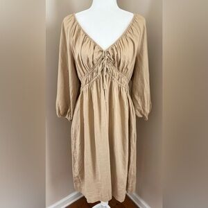 NWOT Universal Thread Tan Linen Blend Cottagecore Fit and Flare Midi Dress