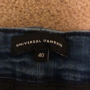 NWOT Universal standard jeans. These are Ravi/colorblock jeans They were cute dark blue panel on the bottom of the front of the jean.