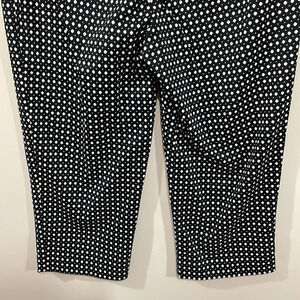 NWOT Unlisted Kenneth Cole Stretch Capri in size 10. Excellent new condition. Front zipper, with button and hook and eye closures, black with white pattern all over. Please see photos for approximate measurements and details. Item may show a difference in color based upon photography and perception. Photos are part of the description, as everyone’s level of condition may vary. From smoke free and pet free home. All packages are shipped the same or next business day.