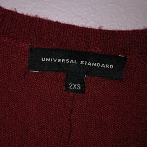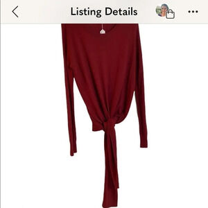 NWOT Universal standard Arenal burgundy tie sweater. It has a long split in the starting at about the waist. The size is 6-8 sweater