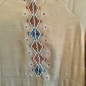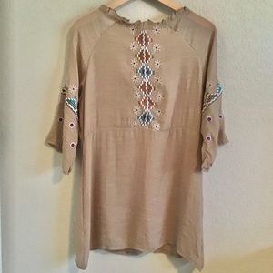 Tan tunic/ dress with beautiful embroidery on the front, back, and sleeves