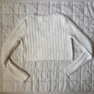 NWOT Urban Outfitters Cropped Ribbed Fuzzy Cream Sweater - Small