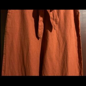 NWOT Urban Outfitters Linen Tie Front Wide Leg Cropped Pants Rust Orange Size M