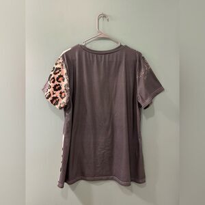 Stylish URBAN LEGEND NEVER STOP graphic t-shirt with a bold motorcycle design. Features leopard print accents. Perfect for casual wear