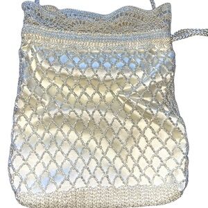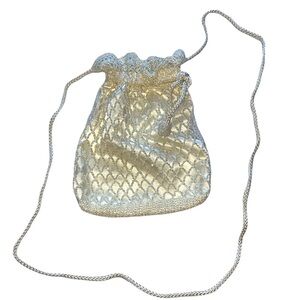 Never Used Valerie Stevens Satin Beaded Evening Bag W/Crossbody Strap And Drawstring Pull Closure
