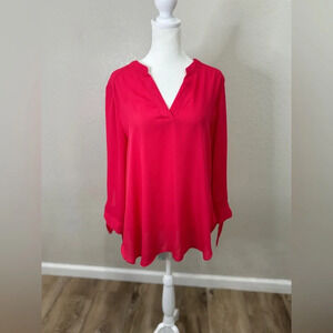 NEW WITHOUT TAGS VALERIE STEVENS SZ: LARGE RED BEAUTIFUL V NECK LONG SLEEVE WITH TIE AT WRISTS