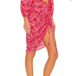 NWOT VDM The Label Stassie Ruched Detail Cover Up Skirt. Brand Print: Pink Paisley ( a colorful and bright pink paisley print over a lighter color pink background -- also has a little orange in the print) Size: Medium