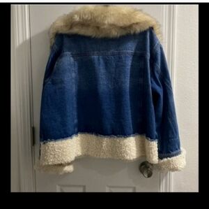 NWOT VENUS 2X FAUX FUR TRIM TRUCKER JEAN JACKET