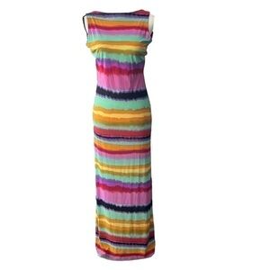 NWOT, VERONICAM, Purple, Pink, Backless, Wave Print, Maxi, Dress, Size L