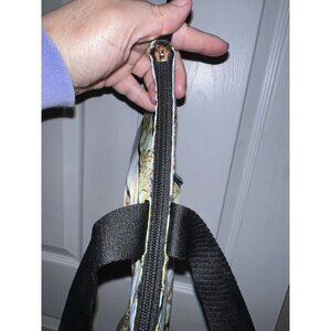 Approximate measurements: Width 16", Height 13", Depth 5.5", Strap Drop 9".