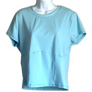 VICTORIA'S SECRET Sweat on Point Crew top XL blue fitted. Crewneck Moisture wicking stretch fabric. Short sleeves.