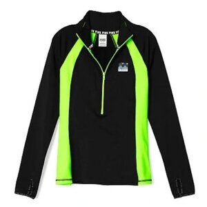 NWOT VS Pink Fleece-Lined Black Neon Green Ultimate Deep Half Zip Pullover