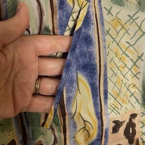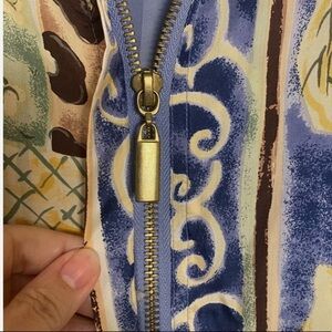 This vintage 80's/90's windbreaker jacket is full of color and style. Retro 80's/early 90's, pairs great with mom casual or business attire, and is great with for fall cool weather. 100% silk outer fabric with 100% nylon lining. Zippered front. Has two pickets on the outside.
