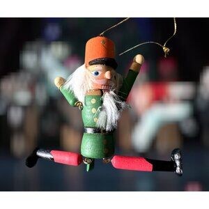 NWOT VTG Nutcracker Christmas Ornament Wooden Dangling Arms Legs Fuzzy B…