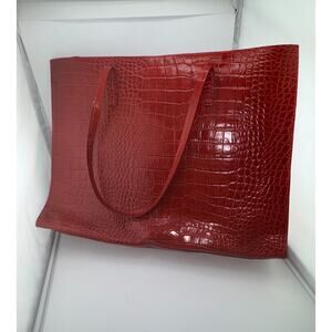NWOT VTG Red Leather Exotic Croc Embossed Shoulder Tote Purse Laptop Bag Italy