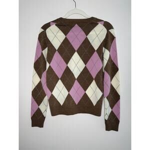 Crafted from soft merino wool, this pink argyle sweater is perfect for adding a touch of academia to your wardrobe.